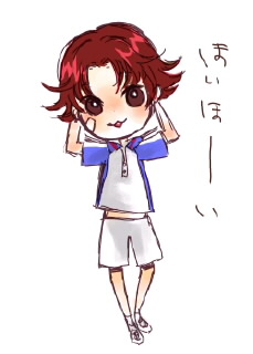 まだ変だったら教えてください。 ツイッターの使い方よく分かってないんで、それもおかしかったらツッコミお願いします。 … あ、そうそう、 昨日テニスの神尾を描いてたんだが(最近神尾が可愛くて仕方ないんだ…病気か…)、あの野郎髪の毛わかんねぇ。 伊武も簡単そうにみえて難しい髪型してる。 頑張るわ。 |